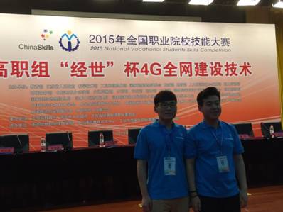 2015年专业学生付穆凡、李滩俊在南京参加全国职业院校技能大赛4G全网建设技术赛项,获得国家级三等奖一项。